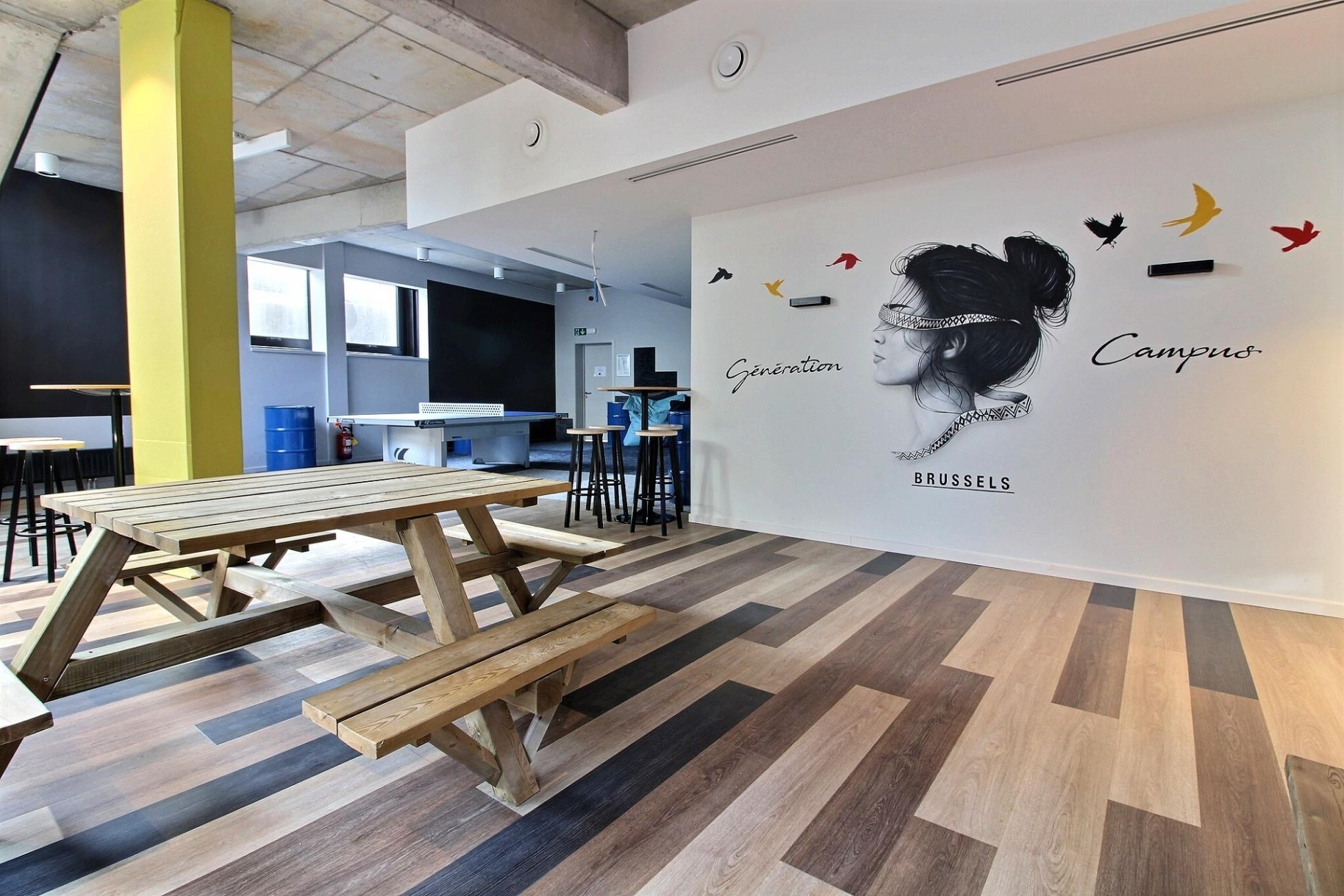 - Nombreux espaces partagés et facilités: coin fitness, espace détente avec jeux (billard, ping-pong, ... ), salle TV et coin repas, salles d'étude (capacité 20 pers. ), parking voitures et vélos sécurisé en sous-sol, buanderies, agence et conciergerie sur place, etc.