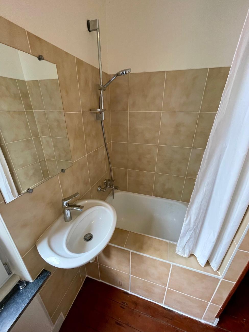 Il est composé d'un lit superposé avec bureau + une cuisine full équipée avec micro onde et frigo. Il y a de plus une douche avec une toilette séparée.