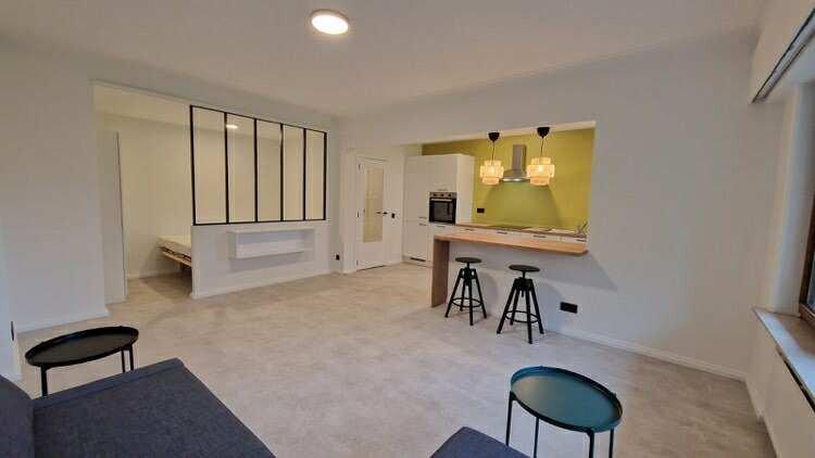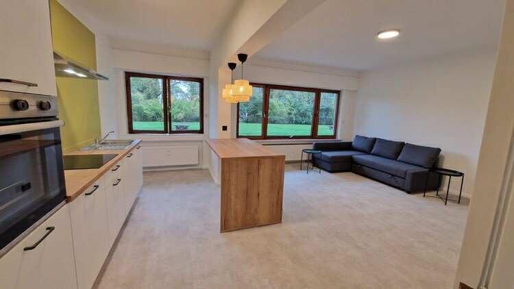 Très beau studio entièrement rénové et meublé situé au rez-de-chaussée d'un immeuble à appartements. Grand séjour très lumineux (38m²) avec vue sur espaces verts à l'arrière de l'immeuble au calme et sans vis-à-vis avec : coin nuit , nouvelle cuisine ouverte entièrement équipée, hall, salle de douche, w-c séparé et espace de rangement. Porte blindée et volets électriques. Porte d'entrée de l'immeuble sécurisée avec badges d'accès. Parking extérieur et local à vélos à l'intérieur de l'immeuble (au rez-de-chaussée également). Situé à 1, 5 km de la VUB (Vrije Universiteit Brussel) Jette - campus Santé et 2km de la Haute École Francisco Ferrer (Campus Brugmann) . Commerces, facilités et transports en commun dans le quartier. Idéal pour couple d'étudiants ou deux étudiantes.