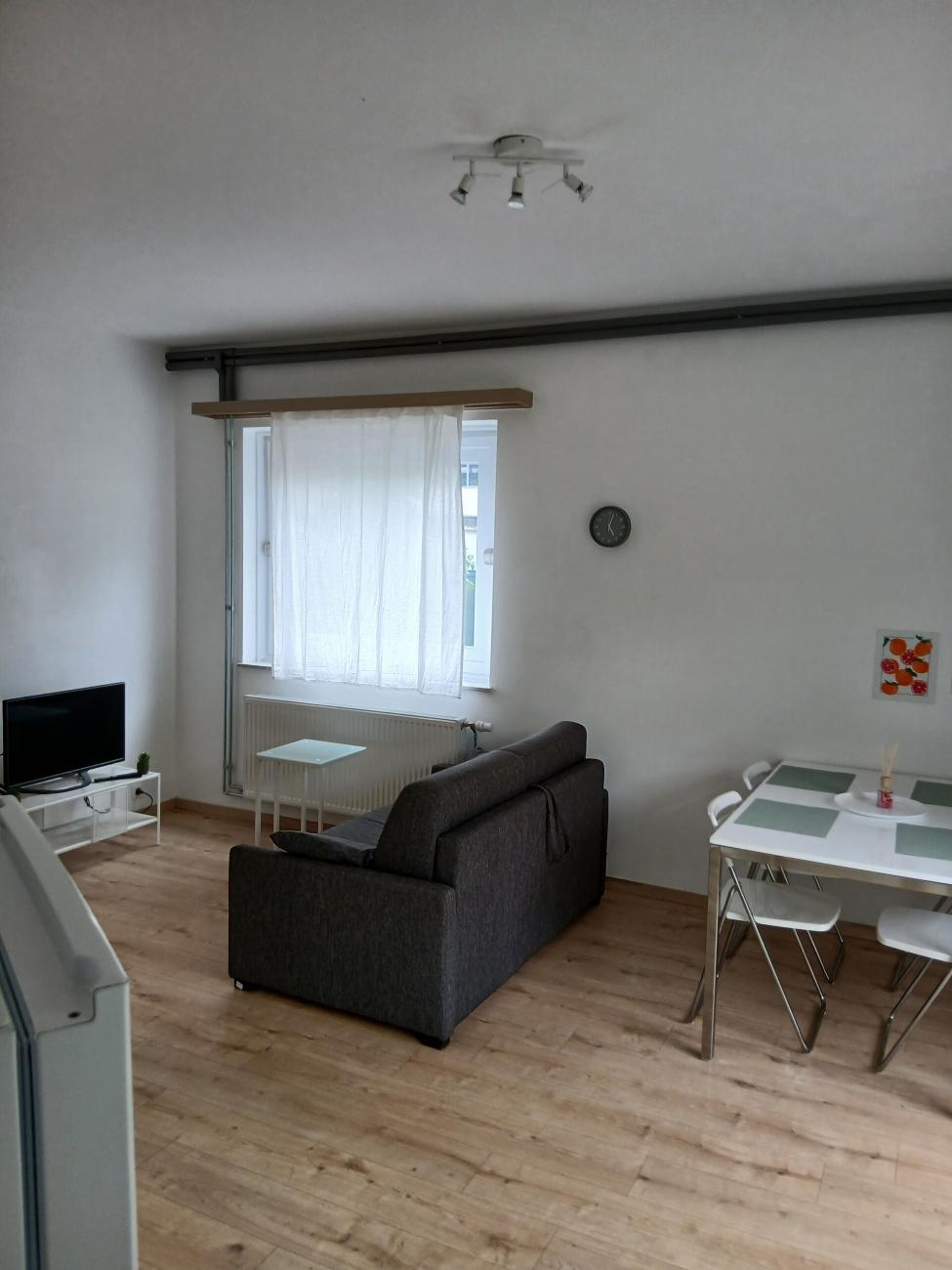 Appartement entièrement meublé, avec terrasse, séjour avec cuisine américaine, et tele et wifi. Hall d'entrée, douche italienne avec toilette, chambre à coucher avec lit double et armoire. Il y a une cave également. Bureau également