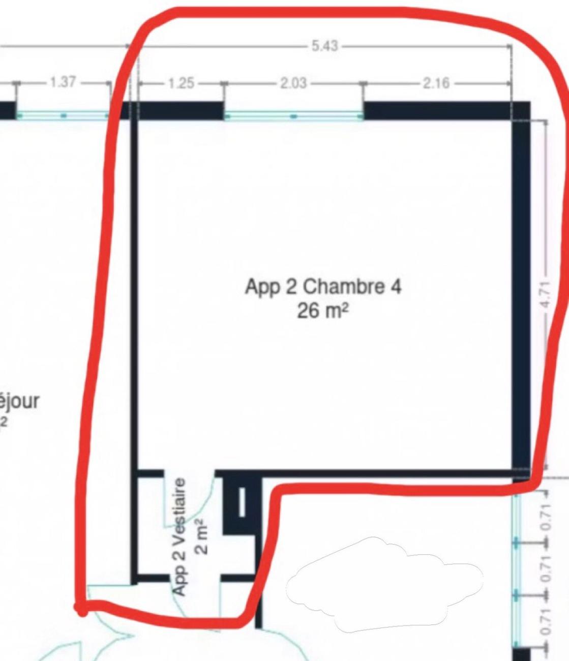 - Meubles du propriétaire : sommier, matelas, bureau, 2 tables de chevet, armoires encastrées
