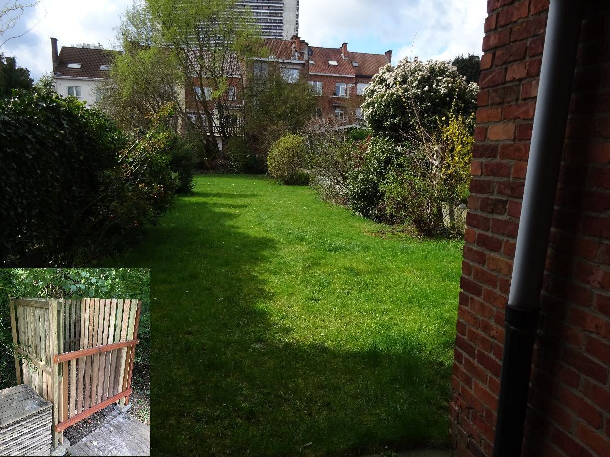 Le jardin est accessible et dispose de 4 sièges, 2 fauteuils de jardin et d'une table. Bac à compost au fond.