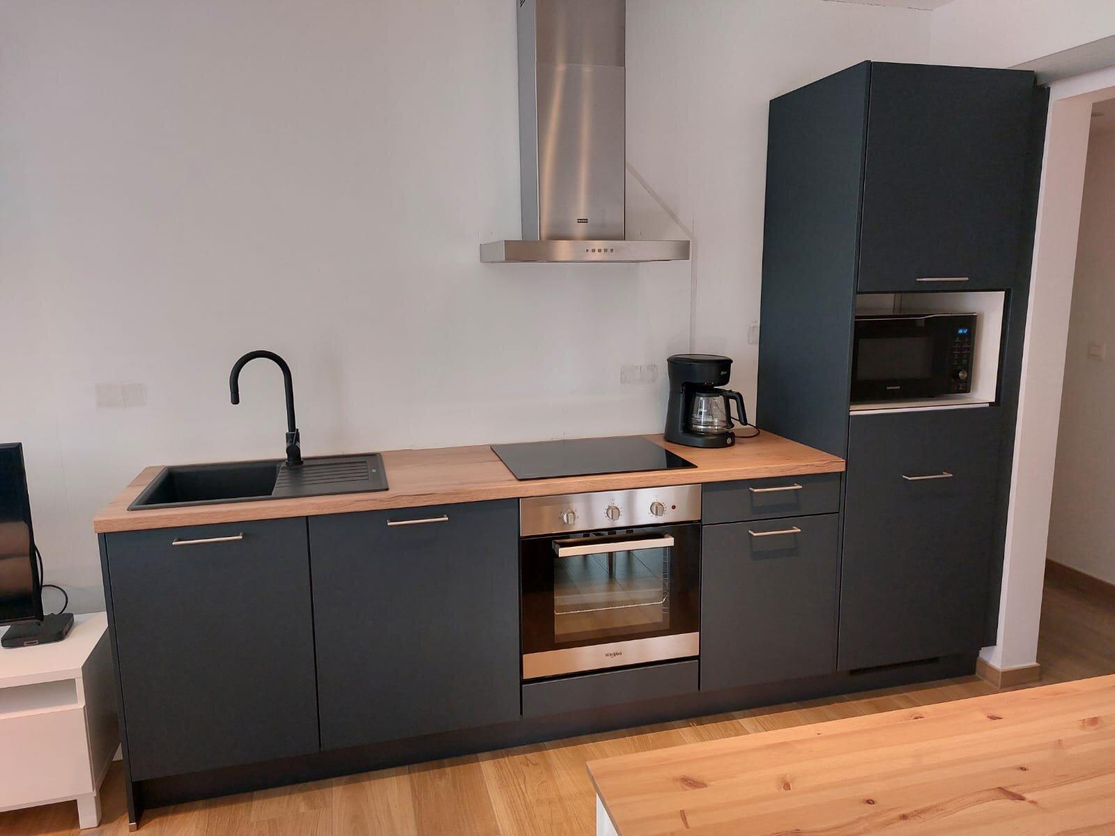 Les chambres sont isolées du reste de la maison et se situent au rez-de-chaussée, avec vue sur le jardin. Toujours au rez-de-chaussée, à côté des chambres se trouvent une cuisine équipée, une SDD (avec une douche d’une taille confortable, une vasque et son meuble, un sèche-serviette), un WC séparé et un petit salon. Le reste de la maison est occupé par les propriétaires qui sont un jeune couple dynamique avec trois enfants (12-10-8 ans).