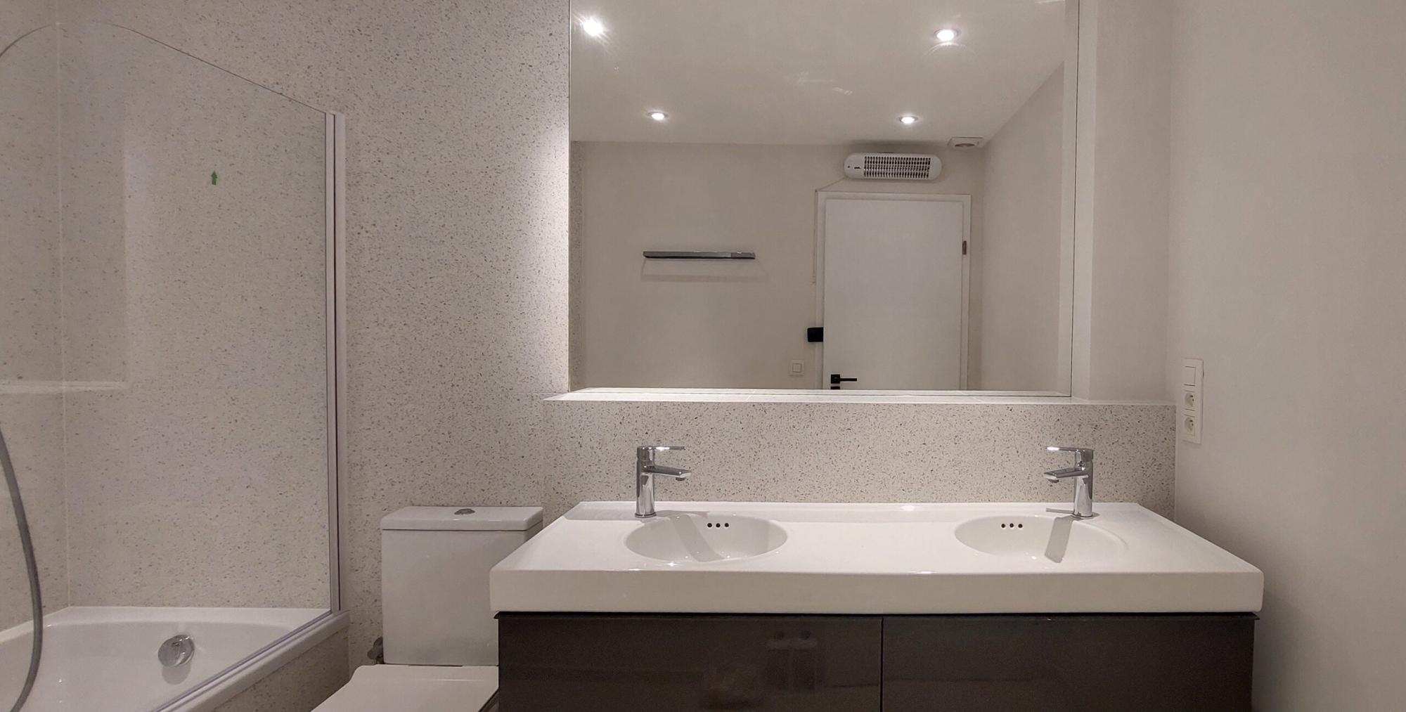 Un espace est prévu dans la salle de douche afin de vous permettre d’installer un lave-linge & un sèche-linge, mais une laverie est accessible dans l’immeuble.