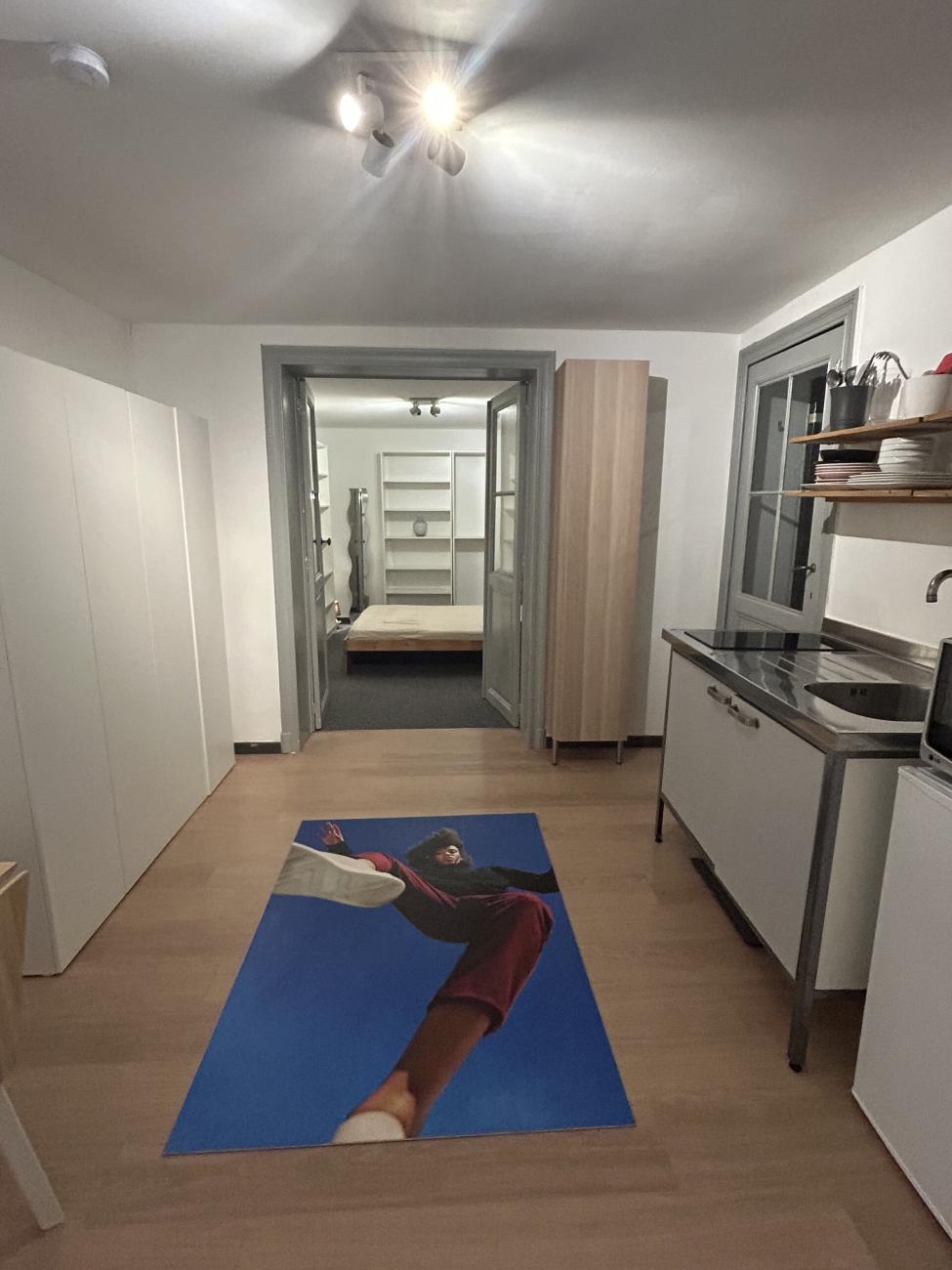 IXELLES, place Flagey. Charming studio of +/-25m². Situated on a ground floor, it consists of the living with an open kitchen and a bedroom. Ideal for students and young professionals. 850 € per month (incl. heating, water, electricity and internet). Contact to visit