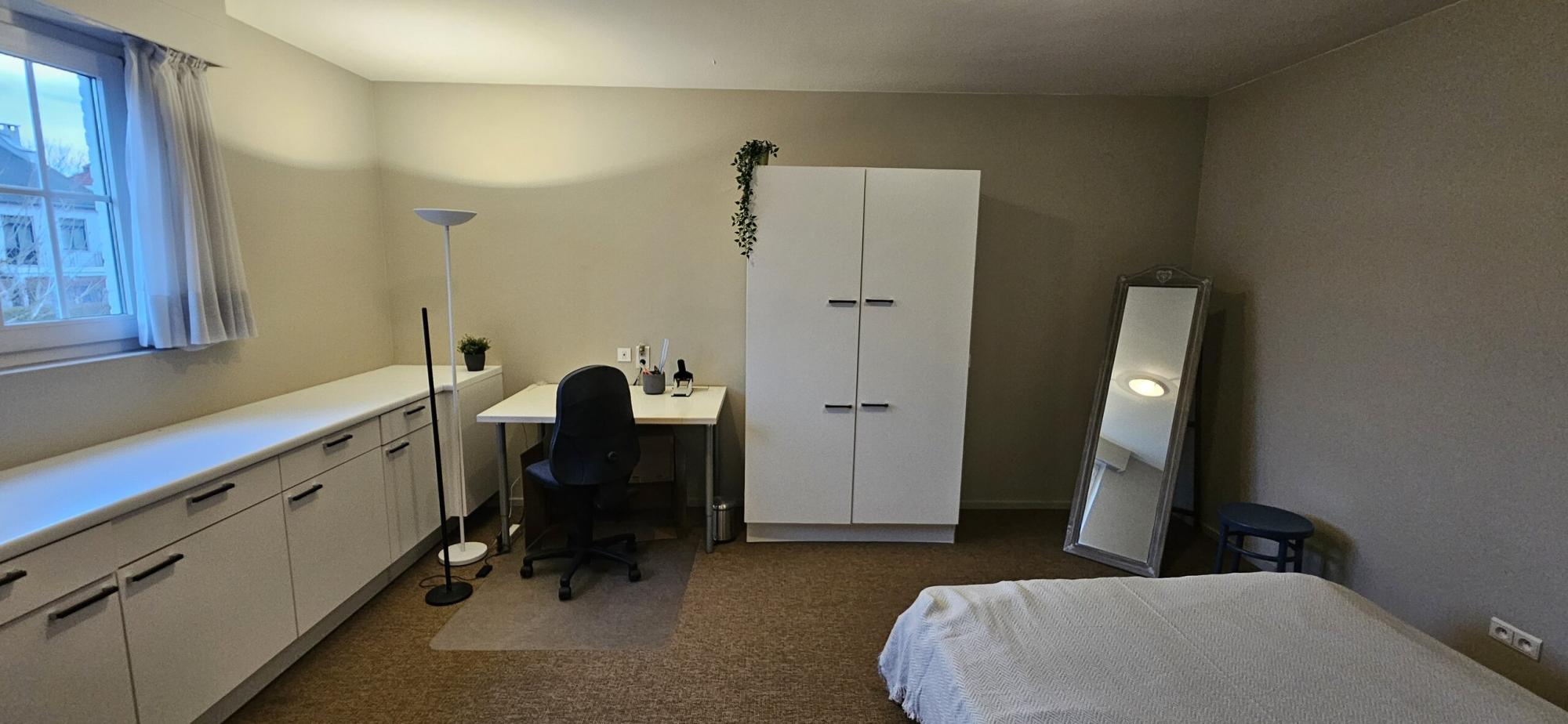 2 ruimtes - +-50 m2 (een ruime kamer en een woonkamer + keukentje) + privé badkamer,