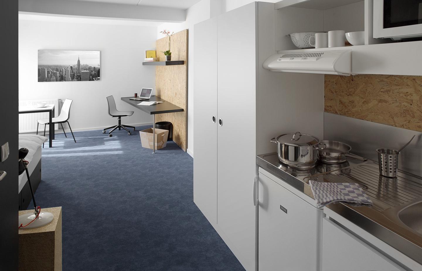 99 individuele gemeubileerde studio's met kwaliteitsvolle voorzieningen op een boogscheut van de universiteiten. Verschillende studiotypes - van standaardstudio (19m²) tot appartement (50m²) – met all-inhuur zonder onaangename verrassingen.