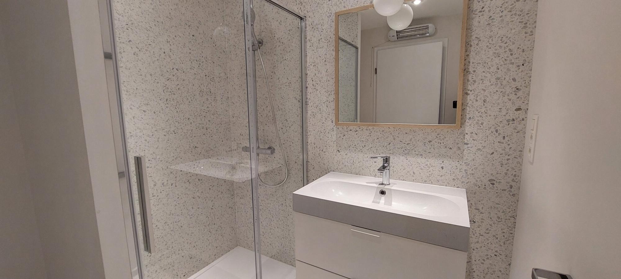 Un espace est prévu dans la salle de douche afin de vous permettre d’installer un lave-linge & un sèche-linge, mais une laverie est accessible dans l’immeuble.