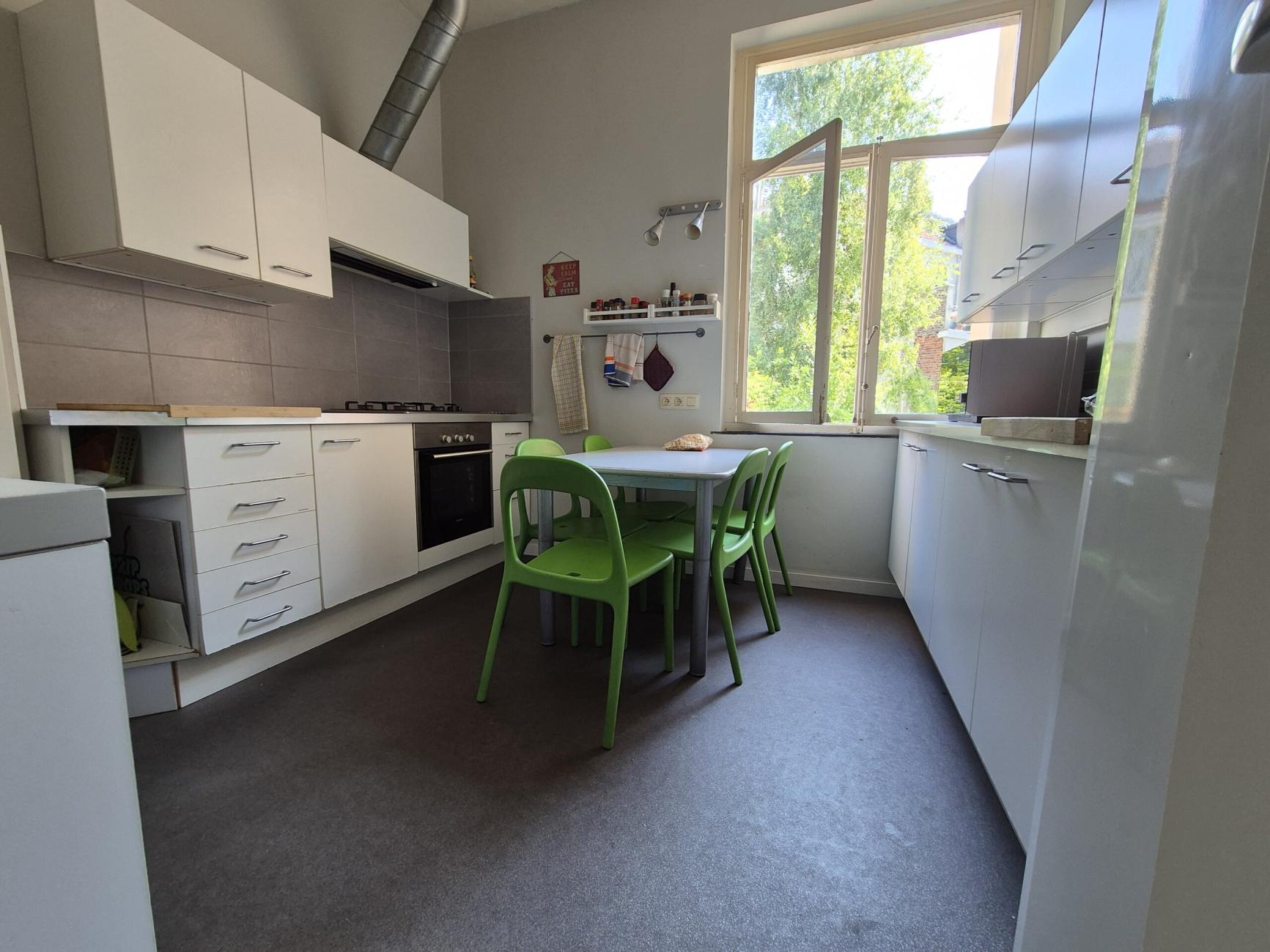 Plusieurs chambres dans un immeuble d'étudiants et de stagiaires (environ 10 personnes) proche de l'ulb, vub et autres écoles et proche des transports en commun (notre arrêt est "eglise saint antoine") pour aller vers les entreprises. La cuisine est à partager entre 5 locataires et bien meublée (grille-pain, bouilloire, grand frigo avec chacun sa planche, grand congélateur avec chacun son tiroir, armoires et tiroirs à couvert, four). Les douches et les wc sont à partager entre 3. Tout est propre. Les kots sont meublés, possibilité d'internet, tv, draps de lit, couette, oreiller et nécessaire de cuisine. Mise à disposition d'un fer à repasser, table à repasser, aspirateur et nécessaire de nettoyage+machine à laver (payante)+fil à linge. L'ambiance avec les autres locataires est conviviale, studieuse et agréable. Une femme de ménage vient 2 fois par semaine pour nettoyer les communs. Ainsi, cela reste toujours impeccable!