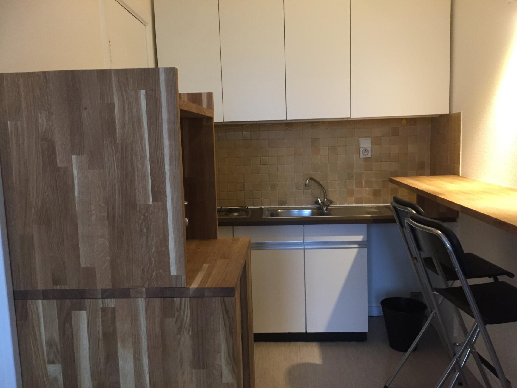 Flat de 20m² très bien situé ( commerces, métro, CEE, Cinquantenaire), coin salon, kitchenette, salle de douche avec WC.