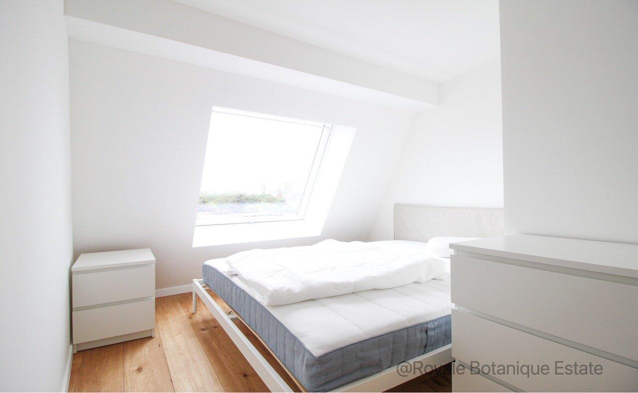 La chambre est à l'étage supérieur du duplex, il y a 2 salles de bain pour 4 chambres. Le batiment a été construit en 2022, il est donc neuf et avec une très bonne isolation sonore