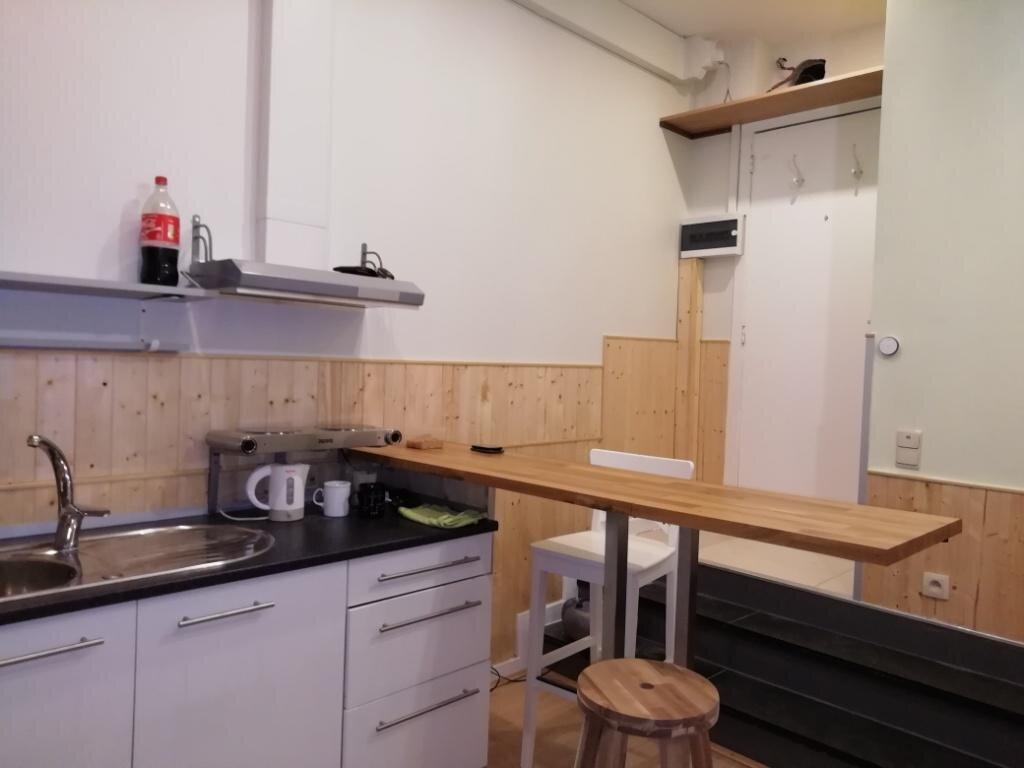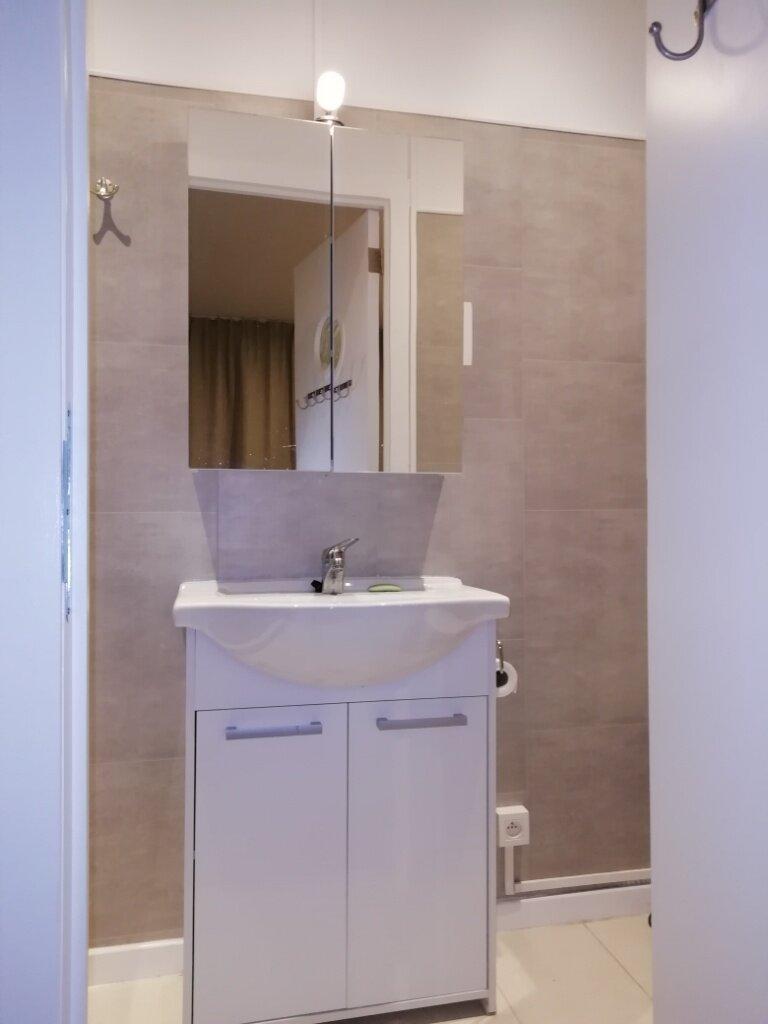 Petit studio sympathique très bon état . Meublé avec lit , armoire , kitchenette , bureau et fauteuil .