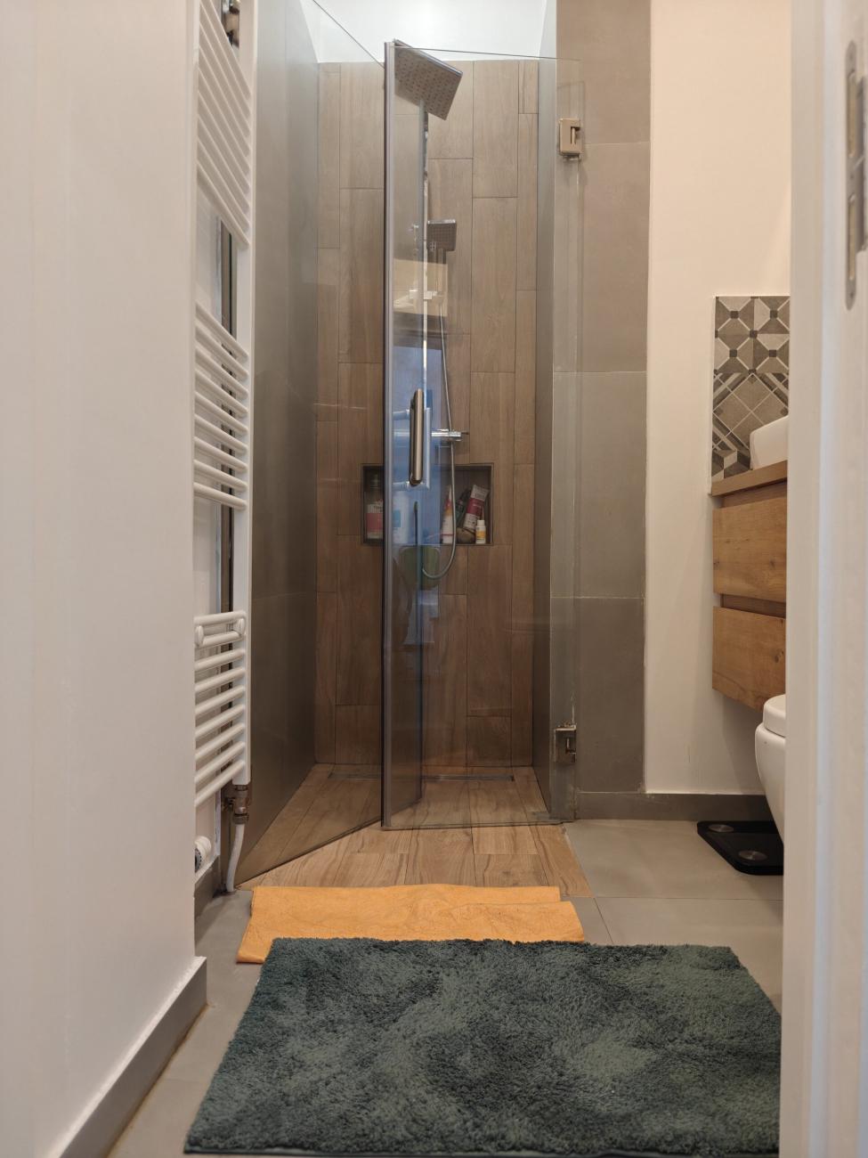 Elle se trouve dans un appartement entièrement rénové (1eme étage).