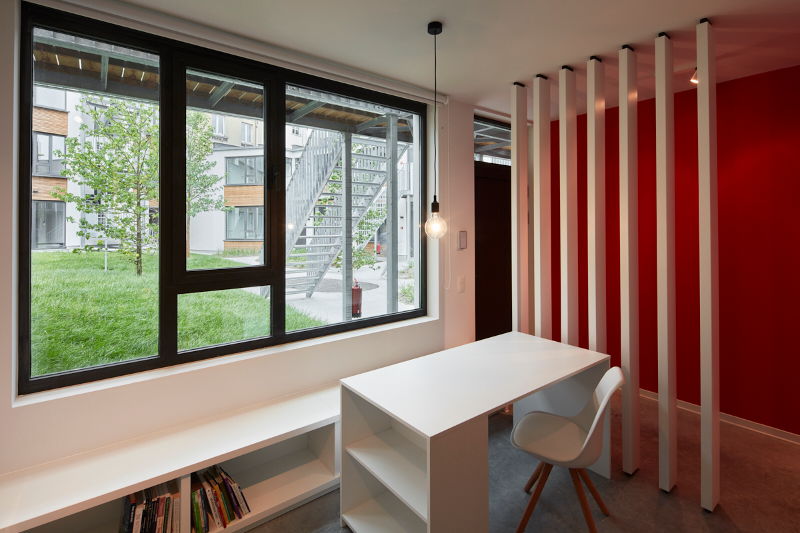 Strak design, moderne opbouw van de kamers en een tikje alternatief: dat is Usine. In academiejaar 2016/2017 openden wij deze nieuwe residentie, in het westelijke deel van Brussel. Het complex is opgedeeld in twee deelgebouwen, waarvan het ene de studio’s herbergt (20 units) en het andere de kamers (59 units).