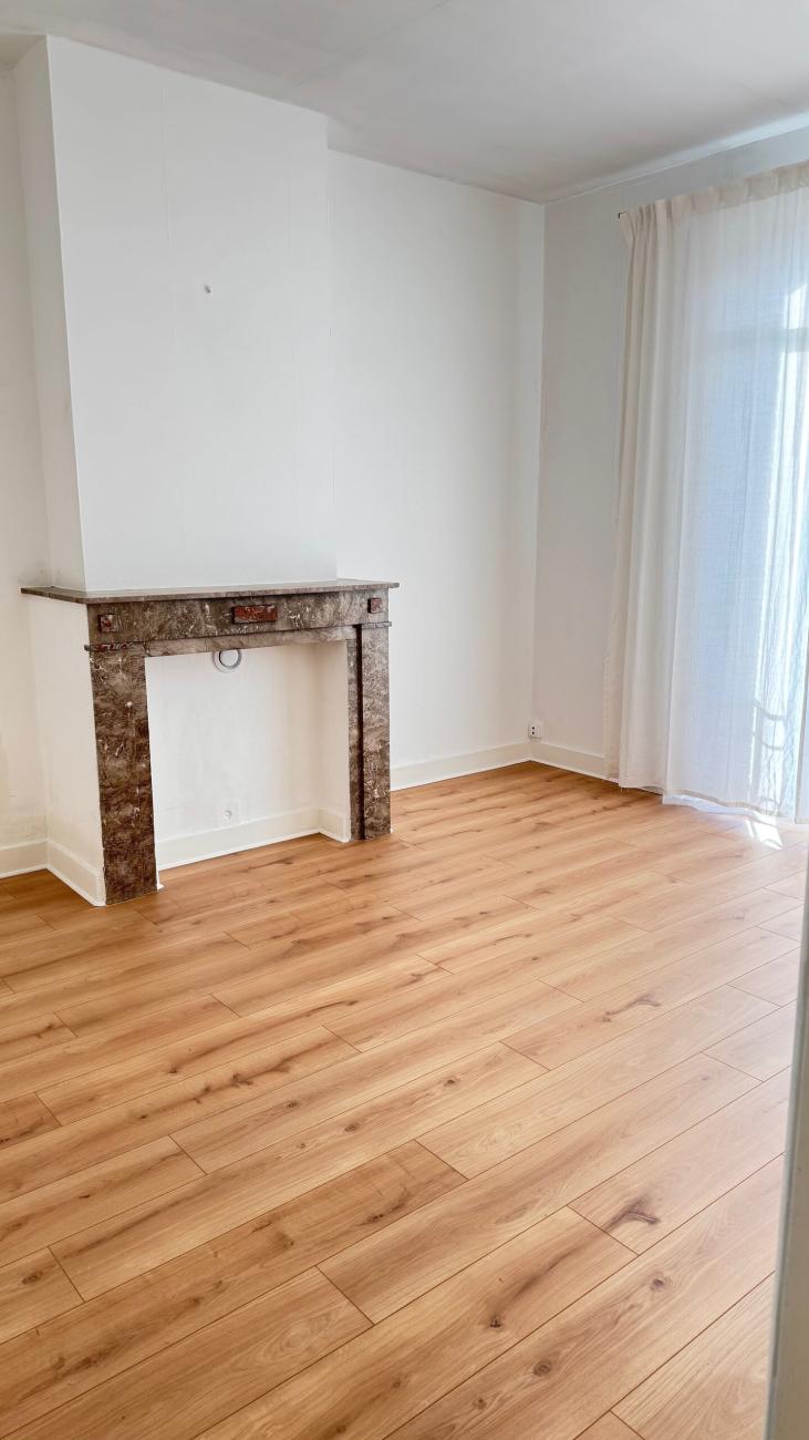 Belle grande chambre lumineuse pour étudiant(e) orientée sud-ouest (soleil couchant), au calme, nouveau parquet, belle cheminée, excellent état général, non meublée, avec kitchenette et salle de douche à partager.