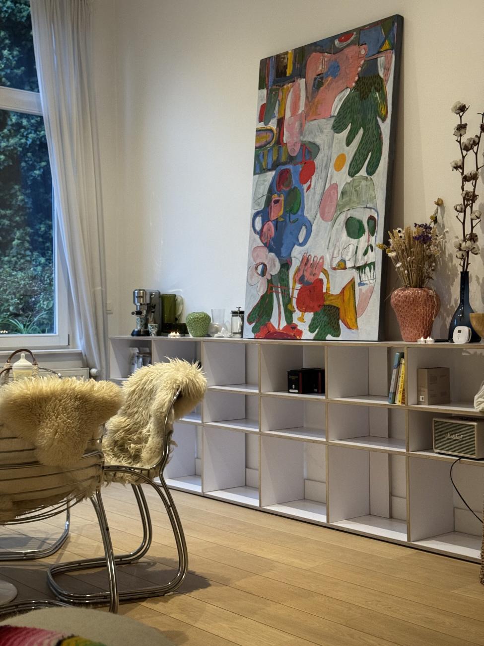 Une chambre de 30m2 avec dressing et grande salle de bain privée dans un appartement de 165m2 avec terrasse et jardin.