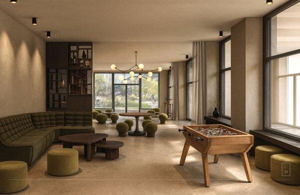 Espace de détente (fauteuils, TV, jeux, distributeur de boissons, ... )